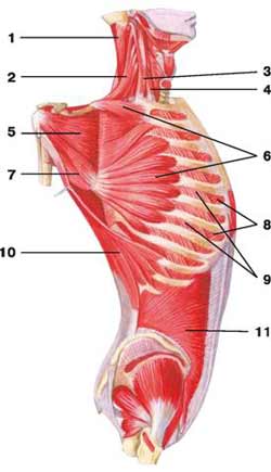 10 — широчайшая мышца спины;
