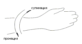 Рис 1.10. Кости левого предплечья Это движение, то есть вращение кисти вокруг оси, проходящей через предплечье, в анатомии называется пронацией или супинацией в зависимости от его направления (рис. 1.11): внутрь - пронация, или наружу - супинация.