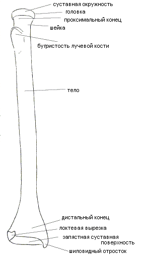 Рис 1.13 Локтевая кость левой руки. Вид со стороны лучевой кости Большая часть боковой поверхности головки занята суставной окружностью - поверхностью, которая вместе с локтевой вырезкой лучевой кости образует дистальный лучелоктевой сустав (рис. 1.14).