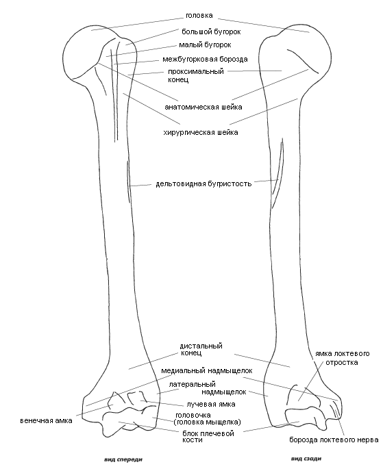 Бедро Голень Стопа НОГА Плечо Плечевая кость, humerus (рис. 1.15), имеет вытянутое округлое тело и два конца - проксимальный и дистальный.