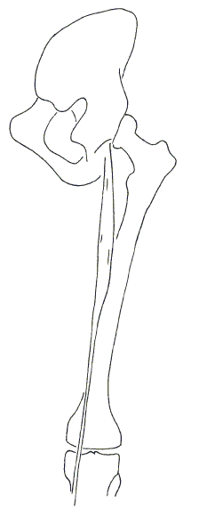 Промежуточная широкая мышца бедра, m. vastus intermedius (рис. 2.27), расположена на его передней поверхности. Она полностью покрывается предшествующими тремя мышцами и поэтому далее подробно не рассматривается. Идентификация. Для того, чтобы лучше идентифицировать латеральную и медиальную широкие мышцы бедра, нужно попросить клиента с усилием разогнуть ногу в колене. Тогда четко прощупываются, а во многих случаях и ясно контурируются округлые дистальные концы брюшек обеих мышц, при этом медиальное брюшко доходит практически до середины надколенника и между ним, надколенником и медиальным мыщелком образуется обаятельная ямочка. Медиально-задней границей зоны массажа медиальной широкой мышцы служит край рассматриваемой ниже портняжной мышцы,. Латеральной границей латеральной широкой мышцы бедра служит в средней ее части плотный апоневроз (подвздошно-большеберцовый тракт), а в проксимальной - напрягатель широкой фасции бедра - мышца, рассматриваемая далее. Границами между боковыми широкими мышцами и прямой мышцей бедра служат боковые края последней, которые при напряженно-разогнутом суставе прощупываются, а нередко и видны как узкие канавки, идущие вдоль передней поверхности бедра. Массаж широких боковых мышц бедра начинаем с массажа боковых краев надколенника и его основания (двойной перекат или эллиптический массаж Стрелой). Далее массируем фронтальным Гребешком сухожилия и мышечные волокна по их направлению, двигаясь к проксимальному концу бедра (эллиптический массаж). "Канавки" рядом с прямой мышцей бедра можно "прокапывать" поперечным Гребешком; тем же приемом отделяем латеральную широкую мышцу от напрягателя широкой фасции, а медиальную широкую - от портняжной. Места прикрепления мышц (шероховатую линию) прощупать не удастся, но можно полностью отмассировать их эфирно - глубоким двойным перекатом поперечным Гребешком. Портняжная мышца, m. sartorius (рис. 2.29), весьма длинна. Ее узкое тело идет наискосок через медиальную поверхность бедра, выходя в своей проксимальной части на его переднюю сторону и прикрепляясь коротким сухожилием к верхней передней подвздошной ости. Дистальный конец мышцы огибает сзади медиальный надмыщелок бедра и затем, превращаясь в узкое сухожилие, прикрепляется узкой полоской к медиальной стороне бугристости большеберцовой кости.