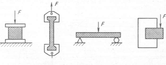 Рисунок 1 Определения пределов прочности на сжатие, растяжение, изгиб и на срез.