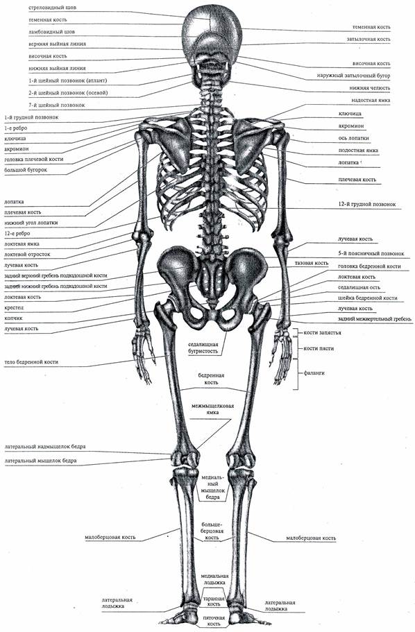 Выполнить графическую схему строения скелета человека с обозначением костей, их соединений и пластических точек
