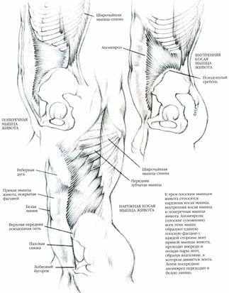 Выполнить копию рисунка мышц туловища и таза с образца (нарисуйте на представленном скелете мышцы туловища и таза; и подпишите их)