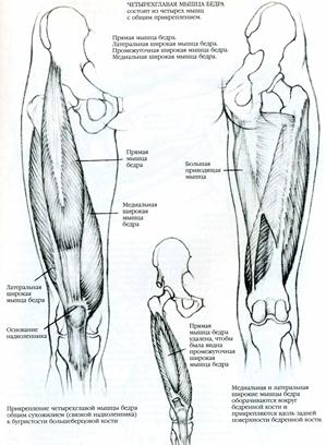 Выполнить копию рисунка мышц бедра с образца (нарисуйте на представленном скелете мышцы бедра и подпишите их)