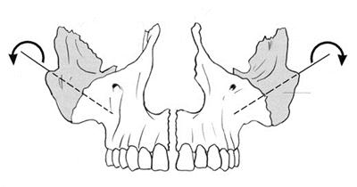 Клиническая биомеханика скуловой кости. Как и все парные черепные кости, скуловые кости осуществляют движения наружной и внутренней ротации. Классическая модель биомеханики скуловой кости предусматривает две оси ротации расположенные антеромедиально под углом 45 градусов к горизонтальной плоскости. Угол и плоскость идентичны движению височных костей, что помогает поддерживать конгруентность двух костей на уровне височно-скуловых сочленений.