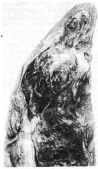 Рис. 354. Цирроз верхушки легкого. Линейный рубец на месте зажившей каверны.