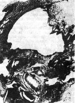 Рис. 356. Очищенная каверна, превратившаяся в кисту (сравнить с рис. 352) (препарат И. П. Соловьевой).