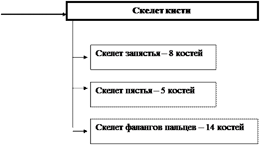 8. Обнаружение: методы- осмотр, наблюдение, динамометрия, исследование сухожильных рефлексов, исследование амплитуды движения в суставах; определение походки, телосложения: форма грудной клетки, конечностей, размеры, изгибы. 1. Одно из важных потребностей человека – это движение, благодаря которому человек способен удовлетворять многие другие потребности. Движение является основным процессом, осуществляющим взаимодействие человека с внешней средой. Осуществление процесса движения происходит за счет физиологической системы движения. Что же понимается под данным понятием? Физиологическая система – это объединение различных анатомических структур организма человека осуществляющих и обеспечивающих процесс движения. Система движения осуществляет процесс движения, обеспечивает функцию движения. Процесс движения: - это совокупность биохимических, биоэлектрических, морфо-функциональных изменений происходящих в физиологической системе движения, которые обеспечивают перемещение и положении тела человека в пространстве. Процесс движения основывается на свойствах и функциональных особенностях костной и особенно мышечной системы организма человека: Это сократимости мышц, особенности соединения костей между собой и соединения костей и мышц. Система движения осуществляет процесс движения, обеспечивает функцию движения. Процесс движения: - это совокупность биохимических, биоэлектрических, морфо-функциональных изменений происходящих в физиологической системе движения, которые обеспечивают перемещение и положении тела человека в пространстве. Процесс движения основывается на свойствах и функциональных особенностях костной и особенно мышечной системы организма человека: Это сократимости мышц, особенности соединения костей между собой и соединения костей и мышц. Проявляется процесс движения в форме различных видов движений: а) статических- обеспечивающих поддержание положения тела человека в пространстве. б) локомоторных - обеспечивающих передвижение тела человека в пространстве. в) манипуляторные - обеспечивающие выполнение действий – точных, произвольных – т.е. манипуляций. Механизм процесса движения наглядно объясняют законы механики. Задание: Используя учебник «Физика», «Анатомия человека» Р.П. Самусева, найдите объяснение механизма движения человека согласно биомеханическим законам. Что такое рычаг в структуре опорно-двигательного аппарата человека? Дайте определение термину – движение! Как Вы можете объяснить понятие, что движение является одним из важных способов самоудовлетворения потребностей человека на конкретных примерах? I. Пассивная часть системы движения – скелет (skeleton). Скелет – это соединенные в определенной последовательности кости. Поэтому скелет не-обходимо воспринимать как костную анатомическую систему. В процессе онтогенеза ске-лет человека проходит 3 стадии развития: