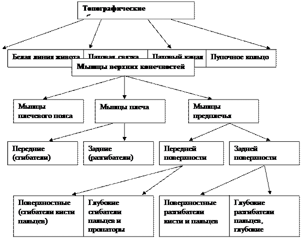 Практическая работа № 3-4. Тема: «Морфо - функциональная и топографическая характеристика мышц туловища». Студент должен знать: -Классификацию мышц туловища. Мышцы спины: поверхностные и глубокие, принципы начала и прикрепления, выполняемая функция. Диафрагма – её особенности, функции, отверстия. Мышцы живота – классификация, расположение, особенности строения, начал и прикрепления. Выполняемые функции. Влагалище прямой мышцы живота - чем образовано, значение. Брюшной пресс – его структуру и значение. Белую линию живота – чем образовано, значение. Пупочное кольцо. Паховой канал, структуры его формирующие, значение, паховую связку и чем она образована. Цель практического занятия: - Усвоить классификацию мышц туловища. - Изучить поверхностные и глубокие мышцы спины, принципы начала и прикрепления, топографические особенности. - Усвоить структурно-топографические и функциональные особенности мышц живота. - Изучить мышцы груди, их функции, топографические особенности. Задание для самостоятельной подготовки к практическому занятию. I. С целью качественной подготовки к занятию повторите тему «Скелет туловища. Способы соединения костей туловища». II. При изучении мышц туловища найдите ответы на предлагаемые вопросы в указанной последовательности. 1). Дайте классификацию мышц туловища. 2). Назовите и покажите границу области спины. 3). Назовите и покажите на препарате, в атласе поверхностные мышцы спины, принципы их начала и прикрепления, объясните их функции. 4). Расскажите о глубоких мышцах спины, укажите на таблицах их местоположение. 5). Покажите латеральный и медиальный тракты. Расскажите о мышцах их формирующих. 6). Расскажите о фасциях спины, покажите их особенности. 7). Назовите и покажите границу области груди. 8). Назовите и покажите мышцы груди, участвующие в движении верхних конечностей. Объясните их функцию. 9). Назовите и покажите межреберные мышцы, их функции. 10). Назовите и покажите части диафрагмы, сухожильный центр, отверстия. Расскажите об особенностях местоположения диафрагмы и выполняемых ею функций. 11). Назовите и покажите границы области живота. 12). Назовите и покажите мышцы передней брюшной стенки, объясните их функции. 13). Назовите и покажите мышцы боковой стенки живота. 14). Покажите белую линию живота, пупочное кольцо. Расскажите, как образуется белая линия живота. 15). Расскажите о паховом канале его местоположении, чем сформирован. Что содержит паховый канал у мужчин и женщин? 16). Назовите и покажите мышцы задней брюшной стенки, расскажите об их функции. 17). Расскажите о функциях мышц живота. Дайте понятие о брюшном прессе. 18). Назовите и покажите слабые места стенок брюшной полости. III. С целью систематизаций знаний о мышцах туловища, составьте таблицу по предлагаемой схеме: