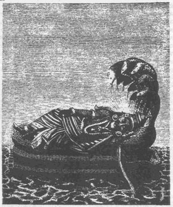 Рис. 28. Вишну, спящий на кольцах змея космического времени