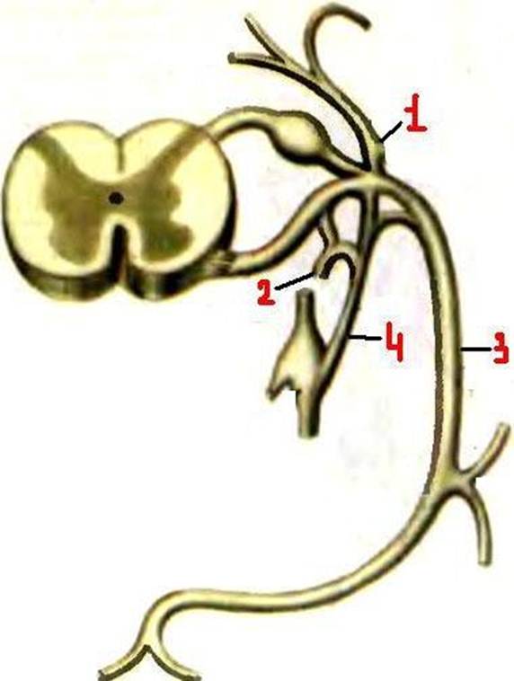I: S: Цифра 1 указывает на ветвь спинномозгового нерва…