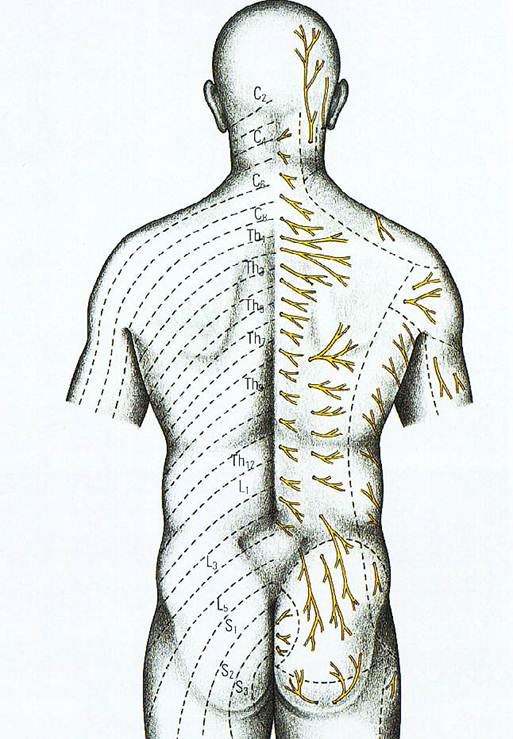 -: задний корешок -: передний корешок +: ствол спинномозгового нерва -: переднюю ветвь -: заднюю ветвь