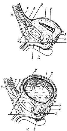анатомия имеет яйцевидную форму объем 500-700 мл, нижняя часть образует дно, (расположенное дорзо-каудально и прилежащее к прямой кишке или к влагалищу) верхняя часть суживается, превращаясь в мочеиспускательный канал. Он имеет переднюю, заднюю и боковые стенки границы - за лонной костью (в пустом состоянии), функция - хранение мочи и сокращение мышц для выделения