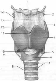 Слизистая внутренней поверхности гортани выстлана мерцательным эпителием, в котором очень много механорецепторов, реагиру-ющих на малейшее раздражение какими либо частицами (вот почему, если в гортань попадает инородная частица, то немедленно возникает сильный кашель). Сама полость гортани имеет вид песочных часов: в средней части она сужена. В этом месте гортани в переднезаднем направлении натянуты две голосовые связки. У мужчин голосовые связки длиннее, чем у женщин. Между голосовыми связками располагается голосовая щель. Звукообразование в гортани происходит на выдохе. Причиной образования звука является колебание (попеременное сокращение-расслабление) голосовых связок с определенной частотой. Колебания голосовых связок передается на выдыхаемую струю воздуха и возникает звук. Чем больше частота колебаний, тем выше звук. Частота колебаний голосовых связок задается импульсами, идущими по нервам от головного мозга. Частота колебаний голосовых связок человека лежит в диапазоне от 80 до 10000 раз в секунду. Звук, который образуют голосовые связки, кроме основного тона, имеет ряд обертонов. Звук, образующийся в результате работы голосовых связок - это еще не голос. Свое естественное человеческое звучание звук приобретает благодаря системе резонаторов. Звук, прошедший через систему резонаторов, превращается в голос. Роль резонаторов выполняют различные воздухоносные полости дыхательного тракта, важнейшими из которых являются сама гортань, глотка и ротовая полость.