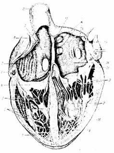 Стенка сердца состоит из трех слоев: внутреннего - эндокарда, среднего - миокарда и наружного - эпикарда. Эндокард выстилает изнутри поверхность камер сердца, он образован особым видом эпителиальной ткани - эндотелием. Эндотелий имеет очень гладкую, блестящую поверхность, что обеспечивает уменьшение трения при движении крови в сердце. Миокард составляет основную массу стенки сердца. Он образован поперечно - полосатой сердечной мышечной тканью, волокна которой в свою очередь располагаются в несколько слоев. Миокард предсердий значительно тоньше, чем миокард желудочков. Миокард левого желудочка в три раза толще, чем миокард правого желудочка. Степень развитости миокарда зависит от величины работы, которую выполняют камеры сердца. Миокард предсердий и желудочков разделен слоем соединительной ткани (фиброзное кольцо), что дает возможность поочередного сокращения предсердий и желудочков. Эпикард - это особая серозная оболочка сердца, образованная соединительной и эпителиальной тканью. ОКОЛОСЕРДЕЧНАЯ СУМКА (ПЕРИКАРД)
