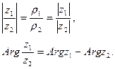 Таким образом, при делении комплексных чисел модули делятся, а аргументы вычитаются: