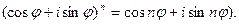 Таким образом при возведении комплексного числа в степень модуль возводится в эту степень, а аргумент умножается на число, равное показателю степени: