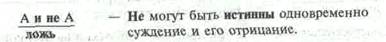 Машина, использующая систему Пролог, дает ответы строго в соответствии с определенными логическими законами и принципами логического вывода. Разберем эти законы и принципы. Закон противоречия — первый общий закон логики. Этот закон впервые высказал Аристотель - основатель логики как научной дисциплины: