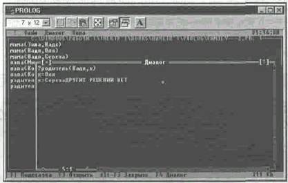 После ввода этих правил в ЭВМ система Пролог на вопросы о родителях выдаст такие ответы при указанной выше базе данных: ? родитель(Надя, х) — Кому родитель Надя? х = Оля х = Сережа
