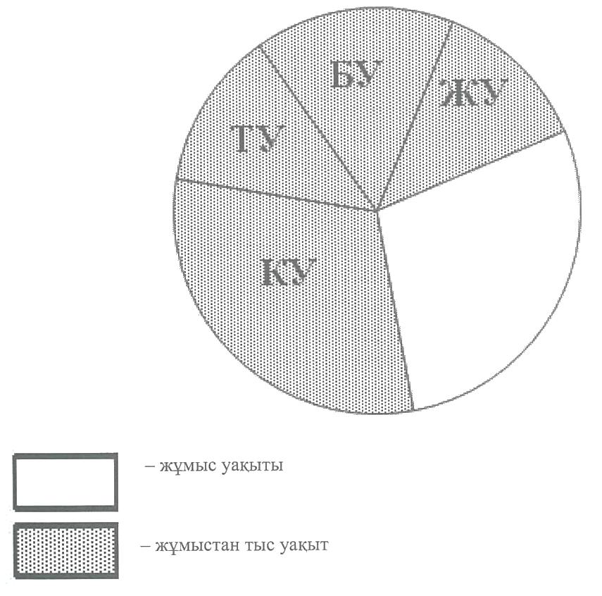 ЖУ - жұмыс орнына жету және кайтуға арналған уақыт ТУ - үй шаруашылығына және тұрмыстыққажеттілікті өтеуге арналған уақыт КУ - күнделікті қажеттілікті өтеуге арналған уақыт (үйқы, тамактану, жеке тазалық) БУ - демалысқа және физикалық, интеллектуалдық дамуына арналған уақыт (бос уақыт 1-сурет. Еңбекші халықтын тәуліктік-жиындық уақытының құрылымы [1] Бос уақыттың негізгі екі функциясы бар: 1) адамның күшін қалпына келтіру функциясы; 2) физикалық және рухани даму функциясы. Қалпына келтіру (психофизиологиялық) функциясына тамақтану, үйқы, қозғалыс жатады. Даму (рухани-интеллектуалды) функциясына сауықтыру, танымдық, қатынас жасау жатады (В.М. Кривошеев, 1978). Жоғарыда айтылғанға сүйеніп «рекреациялық іс-әрекет» анықтамасын беруге болады. Рекреациялық іс-әрекет- бұл адамның бос уақытында пайда болатын физикалық және психикалық күшін қалпына келтіру және өз-өзін жан-жақты дамыту мақсатында орындалатын іс-әрекет. Рекреациялық іс-әрекет адамның қолы бос уақытында өтеледі. Қолы бос уақыт екі бөліктен тұрады: 1) бос уақыт немесе демалуға арналған уақытжәне2) бұдан гөрі күрделі жоғары дәрежелі іс-әрекеттерге арналған уақыт. Пайдалану сипатына қарай бос уақыт күнделікті, апталық және жыл сайынғы бос уақыт болып бөлінеді. Бос уақыттың осылай бөлінуі демалыс құрылымын зерттеу кезіндегі әдістемелік негізі болып табылады. Сондықтан бос уақыт рекреациялық іс-әрекетті мерзімділік және территориялық белгісі бойынша қарастыруға мүмкіндік береді. Күнделікті бос уақытты пайдалану немесе күнделікті рекреация қала ішіндегі күнделікті демалыспен байланысады. Апталық рекреация қала маңындағы рекреациялық объектілердің орналасуына байланысты болады. Ал жыл сайынғы рекреация негізінен курортгық рекреациялық объектілерімен байланысады. Сондықтан, бос уақыттың бөлінуі бойынша рекреацияның келесі түрлерін айырамыз: қала ішіндегі рекреация; демалыс күндеріндегі (уикэнд), қала маңында іске асатын апталықрекреация немесе жергілікті рекреация; демалыс немесе каникул кездерінде болатын жыл сайынгы рекреация. Тұрмыста, ғылымда бір-біріне жақын екі ұғым- демалыс пен бос уақыт ұғымдары қолданылады. Олардың мағынасы жақын болса да, дегенмен, айырмашылықтары да бар. Демалыс деген «тәуелді» ұғым: оның мағынасы тек «еңбек» ұғымымен бірге қостасканда түсінікті болады. Әдебиетте қарама-қарсы категориялар - «еңбек» пен «демалыс» диалектикалық біртүтастықта қарастырылады. Демалыссыз еңбек те, еңбексіз демалыс та болмайды. Осындай формула «еңбек-демалыс» адамның әлеуметтік-биологиялық мәніне негізделеді. Биологиялық энергияны толықтырғызбайтын «абсолюттық» еңбек ағзаның азуына және өлімге апарып соғады. Бүған жаратылыс табиғи тосқауыл қойған: оның аты - шаршау, ал шаршаған адам белсенді болсын, пассивті бол сын, демалыс арқылы қалпына келу әдісі бар. Белгілі социолог А.С. Орловтың айтуынша, демалыс дегеніміз - ол «ең жоғары деңгейдегі еңбек қабілетін сактау әдісі» болып табылады [4]. Шектен шыққан «абсолюттық демалыс» та зиянды. Жүк түспеген ағза ақырында босап кетеді, төзімділігінен айырылады, адамның еңсесі түсіп қалады. Бұның бәрі шаршаудың салдары, бұл жолы еңбектен емес, демалыстан шаршау. Ағзаның тонусын дұрыс көтермелеу үшін ерекше бір жаттығу, яғни еңбек қажет.Осындай «еңбек-демалыс» қос категориясын қолдансақ, демалысты адамның биоло