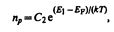 где С 2 — постоянная, зависящая от температуры и эффективной массы дырки, Е 1 — энергия, соответствующая верхней границе валентной зоны. Энергия возбуждения в данном случае отсчитывается вниз от уровня Ферми (рис. 316), поэтому величины в экспоненциальном множителе (242.3) имеют знак, обратный знаку экспоненциального множителя в (242.2). Так как для собственного полупроводника пe=np (242.1), то