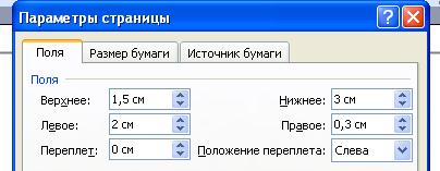 Отступ от края рамки слева и справа по 3 мм. При вставке рамки через колонтитулы вы уже установили параметры страницы и установили рамку. Для установки отступов текста в меню АБЗАЦ достаточно задать параметры отступа текста и первой строки (отступ текста справа от рамки 3мм, слева от рамки 3мм, отступ «красной строки» 1,5 см.) и интервалы, равные нулю. Отступ «красной строки» по ГОСТ 2.105-1995 г. равен 1,8 см, но так как уже отложено 0,3 см (3 мм) от рамки, то чтобы установить отступ в 1,8 см, необходимо установить его не 1,8 см, а только 1,5 см (1,5см + 0,3см =1,8 см). Отступ текста сверху (от рамки до текста) и снизу (от рамки до текста) устанавливается через параметры страницы. Сверху 1,5 см, снизу 3 см: