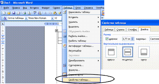 Чтобы отформатировать заголовок по центру ячейки, надо воспользоваться возможностями меню ТАБЛИЦА: