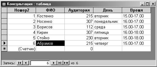 Коли розроблялися СУБД перших поколінь, комп'ютери мали ще малі об'єми пам'яті. Питання раціонального використання пам'яті було тоді дуже актуальним. Особливо гострою була ця проблема для збереження баз даних великих об'ємів, у яких дані часто дублювалися. Дублювання даних є причиною нераціонального використання пам'яті комп'ютера. Прагнення розв'язати цю проблему привело до розробки процедури нормалізації. Нормалізація дозволила використовувати дублювання даних. Хоча питання пам'яті і не стоїть так гостро, як раніше, все-таки процедура нормалізації є необхідною. Нормалізація зараз потрібна для того, щоб організувати дані таким чином, щоб їх редагування робилось тільки в одному місці бази даних. Нормалізація передбачає необхідність виконання процедури зв'язування таблиць бази даних. Access створює реляційні бази даних, які дозволяють об’єднувати інформацію з різних таблиць. Необхідно встановити взаємозв’язки між таблицями, записи яких логічно пов’язані. Створивши таблиці та визначивши ключі для кожної з них задаються зв’язки і на їх основі можна брати дані з кількох таблиць та вміщувати їх в одну форму, запит або звіт. Існує два основних способи зв’язувати дані: це за допомогою полів підстановки та шляхом визначення зв’язків у діалоговому вікні Схема даних. Між двома таблицями можна встановити два типи відношень: “один-до-одного” та “один-до-багатьох”. Найбільш розповсюдженим є відношення “один-до-багатьох” (one-to-many), коли одному запису таблиці відповідає декілька записів в другій таблиці. У відношенні “один-до-багатьох” сторона “один” називається головною таблицею, а сторона “багато” – зв’язаною або підлеглою. Таблиця може бути зв’язаною в одному взаємозв’язку, та головною в іншому. Щоб встановити взаємозв’язок таблиць потрібно зв’язати ключ головної таблиці з співпадаючим полем у зв’язаній таблиці (зовнішнім ключем). Відношення “один-до-одного” (one-to-one) зустрічається набагато рідше. В цьому випадку одному запису в головній таблиці відповідає один запис у зв’язаній таблиці. Для створення зв'язку між таблицями використовуємо Мастер подстановок. Порядок установлення зв'язків будемо розглядати на прикладі двох таблиць, які зберігаються у файлі Ваsа2. Вміст таблиці Список цього файла зображений на мал. 13, а вміст таблиці Консультація - на мал. 22.
