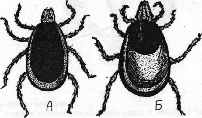 Хитинизированная кутикула клеща образует на спинной стороне крепкий нерастяжимый щиток, размеры которого у самцов и самок различны, что связано с различным количеством насасываемой ими крови. У самца спинной щиток занимает большую часть спинной стороны тела. У самок (голодной) спинной щиток покрывает спереди всего 1/3 длины тела, остальная часть тела одета тонкой, растяжимой кутикулой (определите пол имеющегося у вас клеща). Зарисуйте ротовой аппарат клеща и обозначьте его структуру.