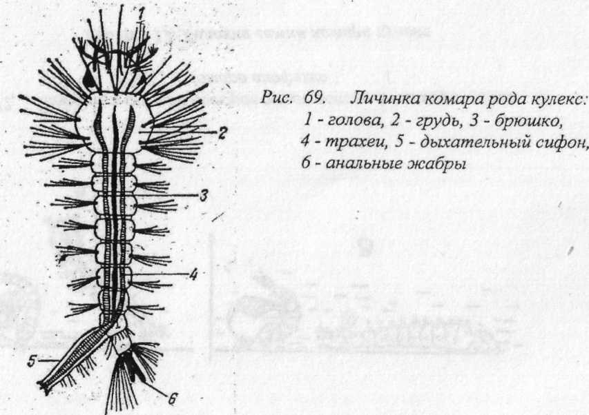 Зарисуйте личинку. На рисунке обозначьте: голову, грудь, брюшко, трахеи, опахала, дыхательный сифон, стигму, усики, кишечник, анальные жабры.