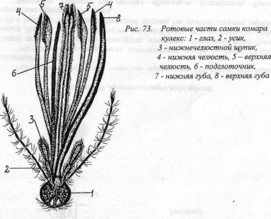 Работа 13. Головка самки малярийного комара Сравните строение элементов ротового аппарата самки малярийного комара и самки комара анофелес. Найдите отличия. Зарисуйте головку в альбом и сделайте соответствующие обозначения.