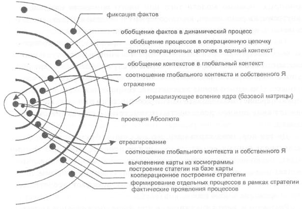 Рис. 66. Отражение-отреагированпе в разрезе логических уровнен сознания.