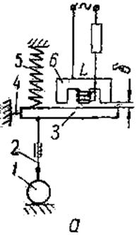 Рис. 85. Схемы электроиндуктивных измерений: а- простая В дифференциальном индуктивном датчике имеются две катушки с индуктивностями L1 и L2. Если при перемещении якоря дифференциального датчика зазор δ между якорем и катушкой увеличивается, то зазор δ0 между якорем и второй катушкой уменьшается. В связи с этим изменяются индуктивности обеих катушек, что приводит к повышению чувствительности измерительной схемы в 2 раза. Автоматический контроль при помощи устройств с индуктивными датчиками осуществляется включением их в мостовые, трансформаторные и дифференциальные схемы. Одной из наиболее распространенных конструкций индуктивных датчиков является двухобмоточный безрычажный датчик ДИ1-М, разработанный Бюро взаимозаменяемости. Индуктивный и контактный методы контроля дополняют друг друга. Так, например, контактный метод не дает возможности определить действительный размер изделия, индуктивный метод позволяет это сделать; контактный метод контроля легко поддается автоматизации, которая для индуктивного метода затруднена, и т. д. Поэтому объединение в одной измерительной головке контактных и индуктивных датчиков целесообразно.