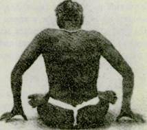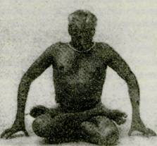 Падмасана 16. Сядьте на основание таза после выполнения падмасаны. Обе ягодицы равномерно расположите на полу. Если вы опираетесь на одну из ягодиц сильнее, позвоночник не будет ровным. Прижмите бедра к полу, приводя бедренные кости глубже в верт-/гужную впадину. Натяните кожу на четырехглавых мышцах бедер в направлении коленей. Это создает свободу в области коленей для диагонального и кругового движений от верхушки наружной части коленей к нижней области внутренних частей. Приведите подколенные мышцы ближе, с гем чтобы уменьшить расстояние между бедрами. После этого анус и гениталии уже не будут оставаться на полу (фот. 13). Площадью опоры здесь служит очень маленькая область промежности между анусом и гениталиями. Направленное вверх натяжение позвоночника начинается отсюда, и тело одновременно поднимается вверх и в стороны от костяка таза. Испытайте это и сохраняйте верхнюю часть и основание лобковой области перпендикулярными. Если это трудно, положите под ягодицы сложенное одеяло (Фот 17 — 18). В падмасане оба колена не будут располагаться равномерно на полу (фот. 13). 17. Не разворачивайте стопы вверх, к потолку, а держите их обращенными в стороны, к стенам (фот.: 19 — неправильно, 20 — правильно). Растяните плюсны (подъем ноги), повернув большие пальцы по направлению к маленьким, таким образом свод стопы сохраняется прочным. Если свод стопы опускается, ягодицы и анус теряют свое устойчивое положение, туловище наклоняется, и позвоночник прогибается в середине, нарушая равновесие всего туловища Не разворачивайте колени и не давите на них намеренно (фот 21 и 22). Любая такая попытка только сместит центр тяжести. Впоследствии, благодаря регулярной практике, хотя колено и остается над землей, практикующий не будет чувствовать этого. Чтобы добиться равновесия в положении обоих бедер, рекомендуется расположить колено» не касающееся поверхности пола, на свернутое полотенце (фот. 23) На следуюпдий день поменяйте положение ног, чтобы достичь равномерной нагрузки (фот. 24) 18. Туловище, или торс, играет наиболее важную роль в практике пранаямы. Сохраняйте энергичную активность тела, ноги и руки - пассивными, как во сне, область от шеи до макушки - в чистом состоянии бдительного спокойствия. Туловище действует как мост между статичными ногами и руками с одной стороны и бдительным, но спокойным умом. 19 Торс будет сгибаться, если спинные и межреберные мышцы утратят тонус или если позвоночник не полностью вытянут. Мышцы от подмышки до бедер спереди, по бокам и на спине являются основными Они прикрепляются своими верхушками на ключицах и плечах, а нижними частями на тазовых и бедренных костях Прочно держите спину. Отрегулируйте положение позвоночника от основания до верхушки, от копчика до шейных позвонков Вытяните позвоночный столб не только от центра, но также с левой и правой сторон. 20. Сохраняйте область пупка пассивной и перпендикулярной к полу. Сузьте область поясницы за счет поднятия ее с обеих сторон. При этом следите, чтобы в этой области не возникало напря жения Эмоции, особенно страх, порождают жесткость и напряжение в этой области, которое воздействует на диафрагму и, посредством ее, на дыхание. Когда область поясницы пассивна, ум и интеллект сохраняют спокойствие. Итак, тело, ум и интеллект едины с Самостью. 21. В тадасане (фот. 25) (см. «Взгляд