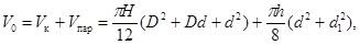 где Vк – объем усеченного конуса, м Vпар – объем усеченного параболоида, м3; D и d – соответственно большой и малый диаметры усеченного конуса, м; d1 – диаметр днища дежи, м; Н и h – соответственно высоты усеченного конуса и параболоида, м.