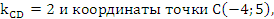 5) Для составления уравнения высоты CD, воспользуемся уравнением прямой, проходящей через точку M0 (x0; y0) с заданным угловым коэффициентом k, которое имеет вид y − yo= k*(x - xo) (2) и условием перпендикулярности АВ и CD, которое выражается соотношением