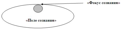 В конце XIX века исследователи приступили к изучению и описанию свойства сознания. Были выделены такие аспекты как «поле» сознания, состояния сознания. «Поле сознания» неоднородно с точки зрения двух аспектов. · С точки зрения содержания в нем одновременно может находиться огромное количество образов (зрительных, слуховых и других), эмоциональных состояний, мыслей, воспоминаний, побуждений. · С точки зрения структуры в «поле» сознания можно выделить центральную область, где образы отчетливы – «фокус сознания» (или, «фокус внимания»), а также область, где образы смутны, неопределенны – «периферия сознания» (рис. 8).