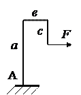 Тест 5.1.7. На раму (рис. 5.1.7) действует сила F=100 H. Размеры рамы: a= 2м, в= 0,5м, с= 0,5м. Момент силы F относительно точки А равен а) MА(F)= 200 Нм; б) MА(F)=-200Нм; в) MА(F)= -150 Нм.