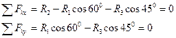 Тест 5.1.14. Груз F (рис.5.1.12) находится в равновесии. Указать, какая система уравнений равновесия узла В верна
