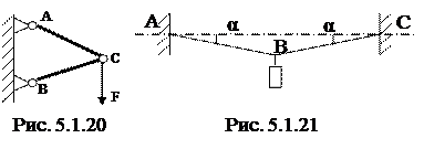 Задача 5.1.7. Груз массой 20 кг подвешен в точке В посредине троса АС, (рис.5.1.21). В результате прогиба ветви троса образовали угол α =150 с горизонтом. Определить графическим способом с какой силой натянуты ветви троса. Задача 5.1.8. Составить уравнения равновесия рамы (рис.5.1.22).
