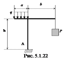 Задача 5.1.9. На кронштейн, состоящий из двух шарнирно соединенных стержней (рис.5.1.23), действует распределённая нагрузка q. Составить уравнения равновесия кронштейна.