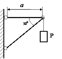 Задача 5.1.11. Определить силы, действующие на стержни кронштейна рис.5.1.25. Дано: Р=2 кН, а= 1,5 м.