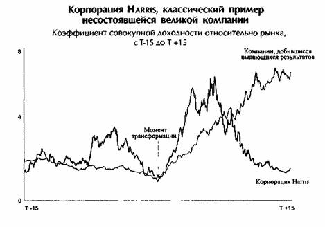 График показывает классическую тенденцию доходности акций несостоявшихся великих компаний: