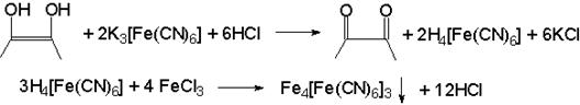 3.4. С феррицианидом калия в присутствии соляной кислоты и хлорида железа (III) → образуется берлинская лазурь синего цвета.