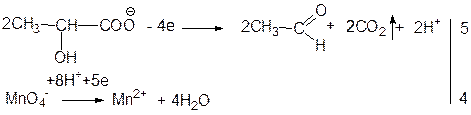 2) На лактат – ион. Препарат растворяют в воде, подкисляют разведенной серной кислотой, прибавляют раствор перманганата калия до красно-фиолетового окрашивания и нагревают, обнаруживается запах ацетальдегида.