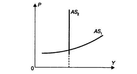 Совокупный спрос (AD) изменяется под влиянием динамики цен. Чем выше уровень цен, тем меньше запасы денег у потребителей и соответственно меньше количество товаров и услуг, на которое предъявляется платежеспособный спрос. Между размерами совокупного спроса и уровнем цен существует и обратная зависимость: рост спроса на деньги влечет за собой повышение процентной ставки. Кривая совокупного предложения (AS) демонстрирует, какое количество товаров и услуг может быть произведено и выброшено на рынок производителями при разных уровнях средних цен (рис.2).