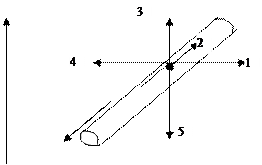$$$ 25 Суретте I тогы бар өткiзгiштiң қима беті көрсетiлген. Өткiзгiштегi электр тогы бiзден сурет жазықтығына перпендикуляр бағытталған. Суретте көрсетiлген А нүктесiндегi қандай бағыт магнит индукциясы векторының бағытымен сәйкес болады?