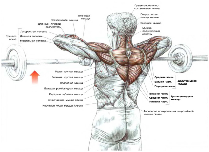 Мышцы: трапециевидные мышцы - плоские треугольные мышцы, которые отходят от шеи в стороны и вниз, а также располагаются между лопатками. Основная функция: поднимают весь плечевой пояс.
