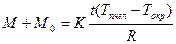 Где Мо – Масса меда, израсходованная пчелами на поддержание жизнедеятельности. M – масса меда, дополнительно израсходованного пчелами на обогрев. R – тепловое сопротивление теплоизоляционной конструкции между пчелами и окружающей средой (тепловое сопротивление улья и утепления) Токр – температура окружающего улей воздуха Тпч – температура поверхности клуба пчел, около 9С. t – время К – постоянный коэффициент, куда мы загнали все константы.